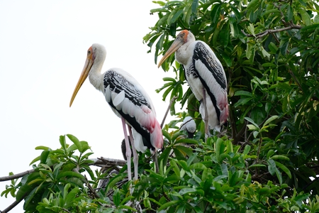 breeding colony of Painted Stork (Mycteria leucocephala) in Thai forest