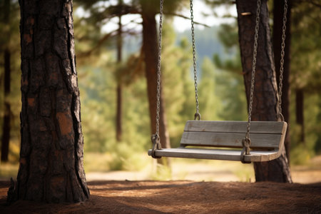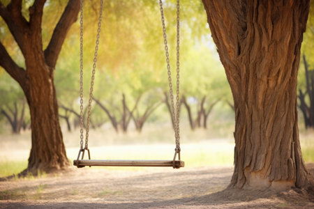 close-up of swing set with empty swings swaying in the breeze, created with generative ai