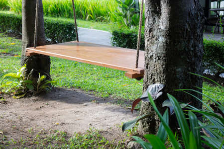 Swing hanging on tree in the garden. Lampang Thailand.