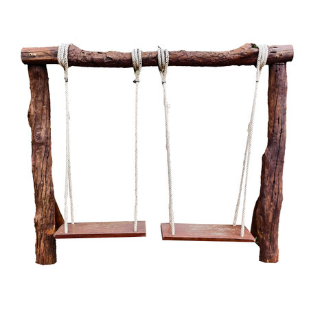 Time-worn rope swings with charming textures, rustic nostalgic look isolated on white
