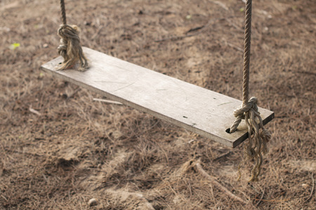 Close up old wooden swing in the garden