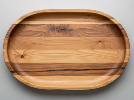 A beautifully crafted oval wooden serving tray showcasing natural wood grain and a smooth finish.