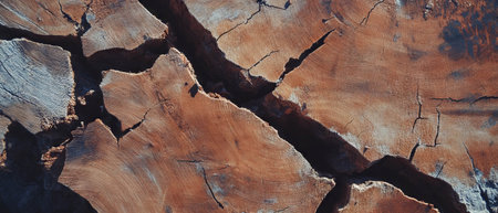 Cracked wood texture revealing deep grooves and rough brown surfaces in natures beauty