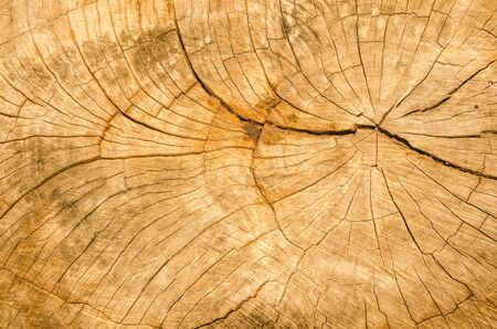 Wood texture of cut tree trunk, Tree-rings, close-up background texture.