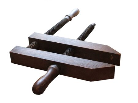 Old clamp use for clamped pieces of wood in carpentry workshop.