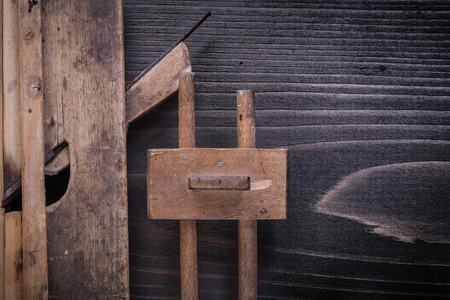 Carpentry tools on a wooden table in an old carpentry workshop. Old carpentry learning.