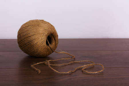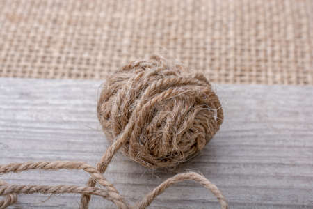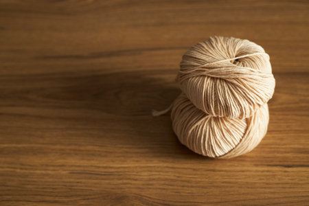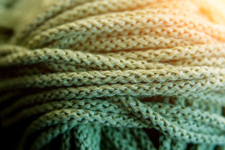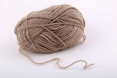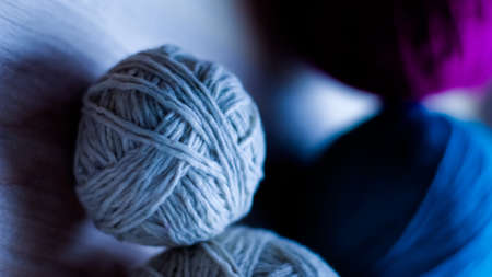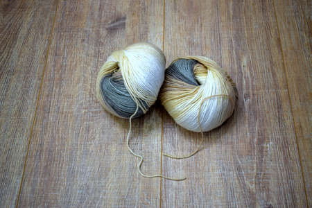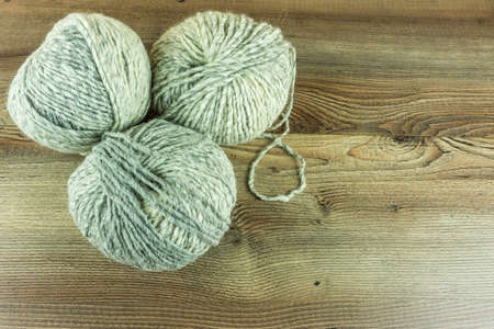 Threads for knitting, from natural environmentally friendly wool, close-up on a light background. Hobby home needlework