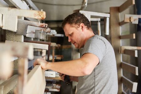Carpenter Woodwork and furniture making in carpentry workshop