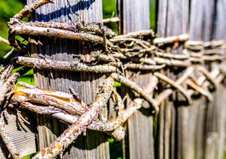 close up a bunch of brushwood, thin dry twigs for kindling a fire