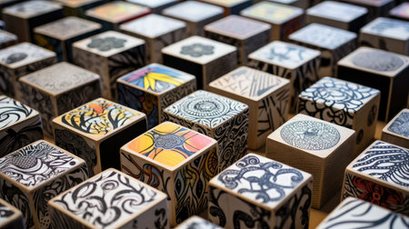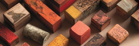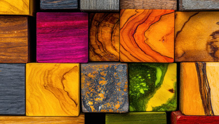 Captivating close-up image featuring wooden cubes of varying textures and colors, perfect for design projects related to home d