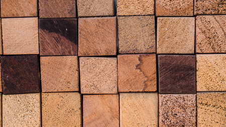 Close-up of wooden blocks, varying colors and grain patterns, arranged together