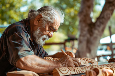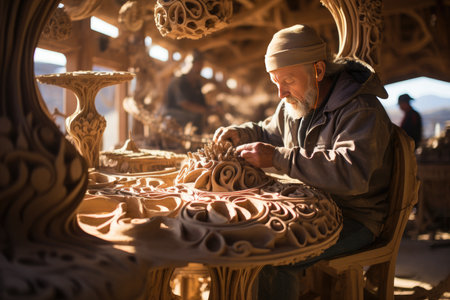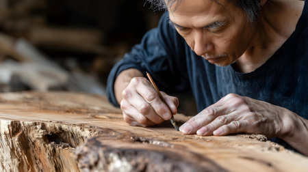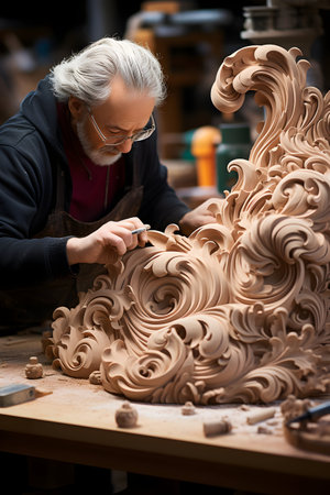 Skilled Carpenter Carving Intricate Designs on Wood for Artisanal Creations