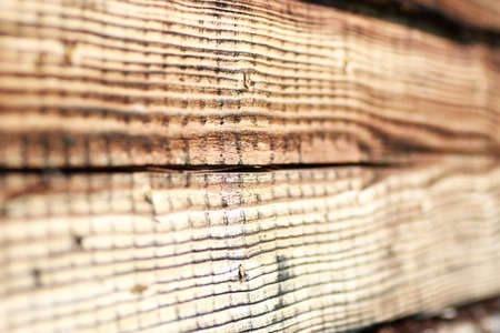 The wooden background of the chopped trees closeup with the selective focus.