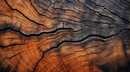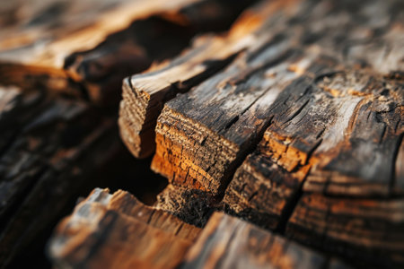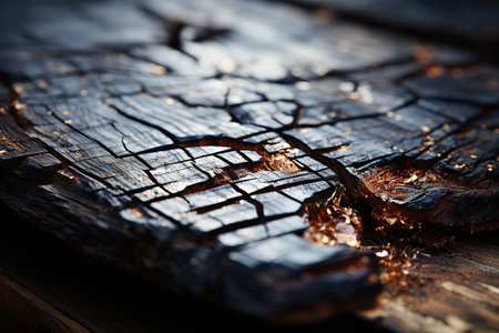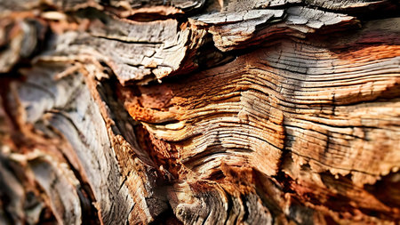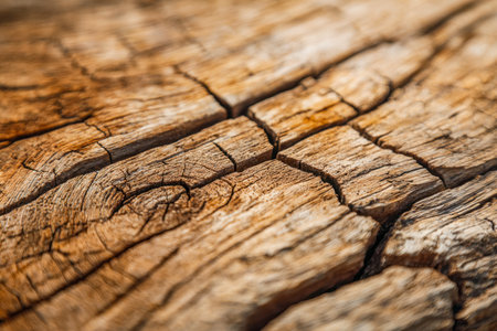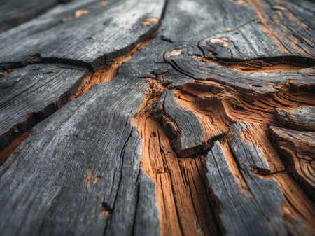 A detailed macro shot reveals aged wood's intricate grain and deep fissures, showing warm amber hues and a rugged, timeworn character perfect for rustic themes.