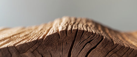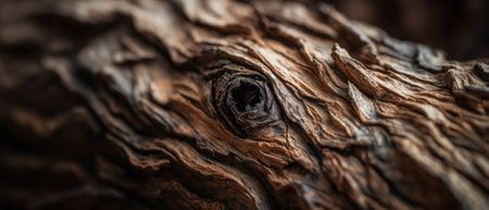 Macro shot of a wooden oak tree surface with deep textures, warm hues, and intricate grain patterns