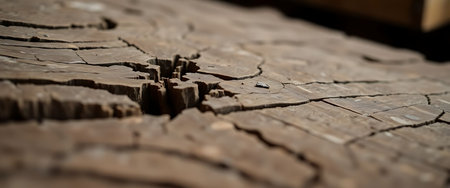 AI Generated. Close up of weathered untreated wood surface showcasing intricate cracks and textures in rustic natural style for backgrounds and designs