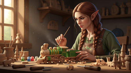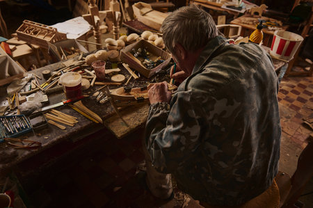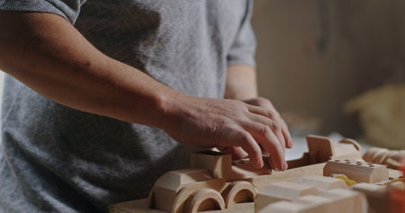 A Craftsman is skillfully working with wooden toys, showcasing their artistry and creativity
