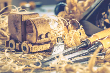 fathers day concept carpenter wood toy car craft, handle.