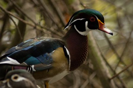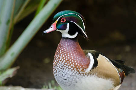 Close-up of wood duck or Carolina duck or Aix sponsa