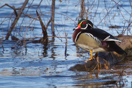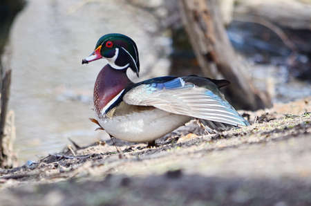 Wood Duck - Aix sponsa - at the edge of the pond
