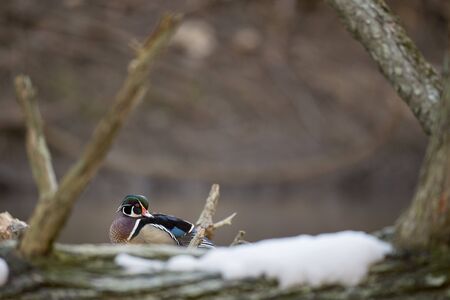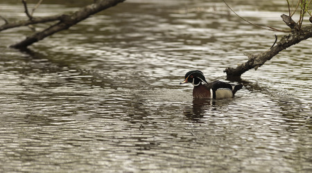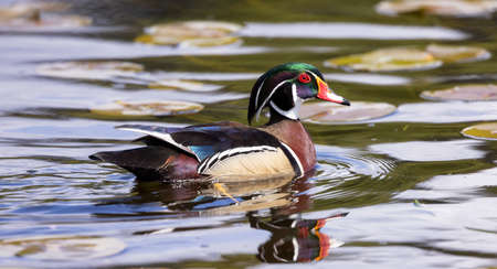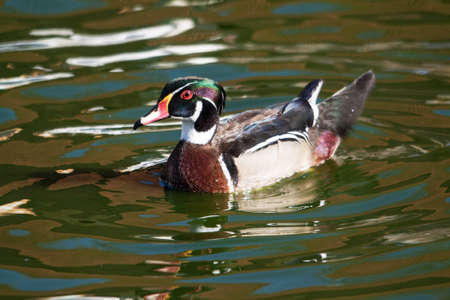 Carolina duck (Aix sponsa), also known as the wood duck. Wildlife bird.