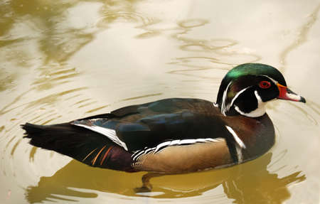 Wood duck in shallow water at Austin Roberts bird sanctuary