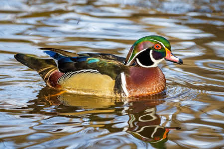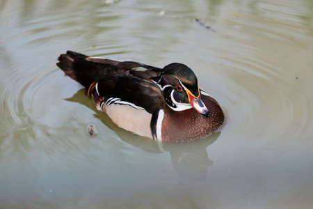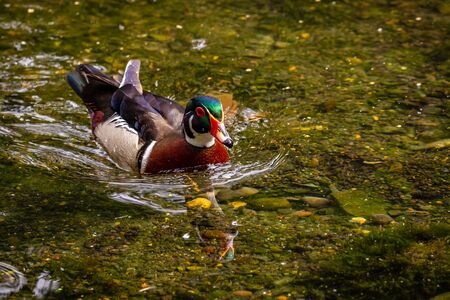 Carolina duck Aix sponsa, also known as the wood duck. Wildlife bird