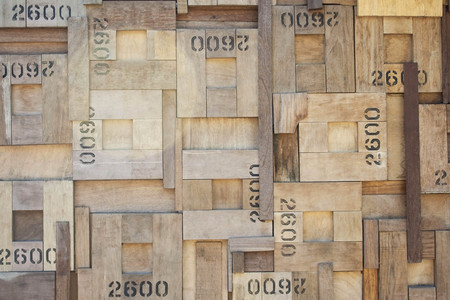 pattern of wooden squares wall with figures