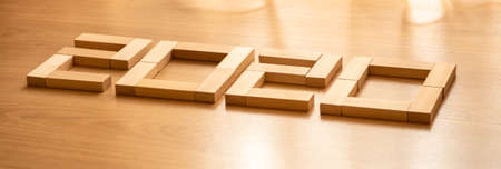 2020 text on wooden cubes on desk