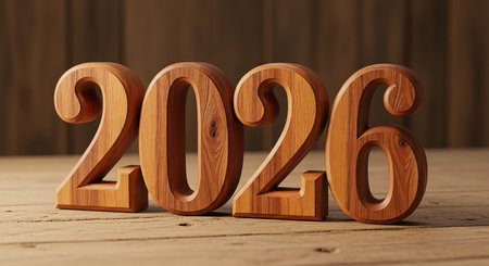 Elegant Wooden Numbers for Celebrating the Start of 2026, Fresh Design Elements for Inspiration