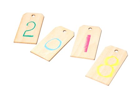 Two thousand eigteen wooden figures. 2018 the year of the wooden figures on old wooden background. New Year concept.