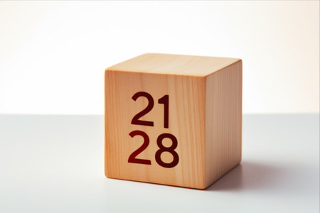 Festive Cube: 25th December Wooden Calendar on a White Textured Background
