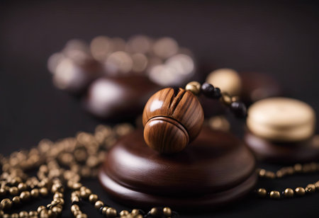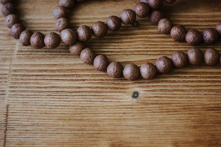 Praying beads on the wooden ground