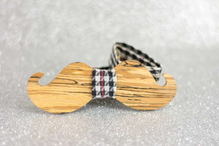 Mustache shaped Wooden bow tie on silver background