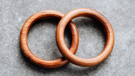 A clean and minimalist composition featuring wooden rings on a textured blue surface, highlighting simplicity.