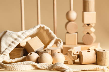 wooden toy blocks with paper background color