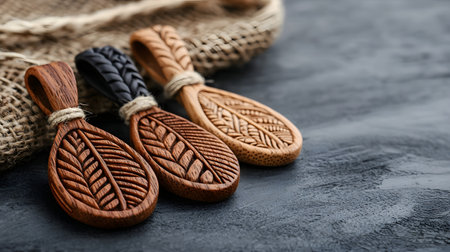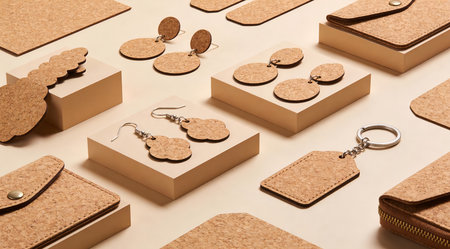 Soft diffused lighting creates a gentle, organic mood with subtle textural depth in warm earthy palettes, emphasizing artisanal craftsmanship through precise shaping and harmonious composition. Perfect for sustainable design portfolios, eco-craft tutorials, fashion accessory mockups, or green lifestyle blogs targeting designers, artisans, and environmentally aware cr... AI-generated illustration.