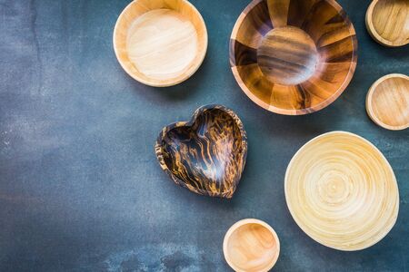 Wood bowl on black stone background