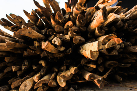 arrow showing hand made wooden bamboo carving engraved fish figure artwork on bamboo, rows of engraved bamboo sticks. tribal artwork. textured background