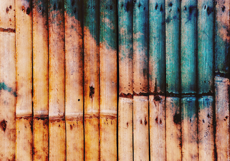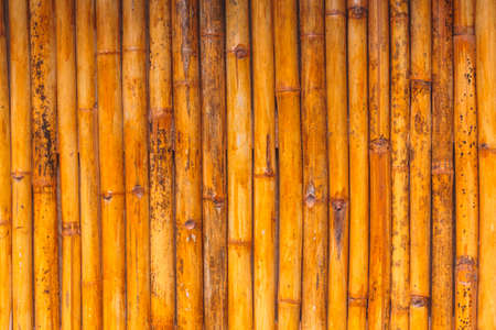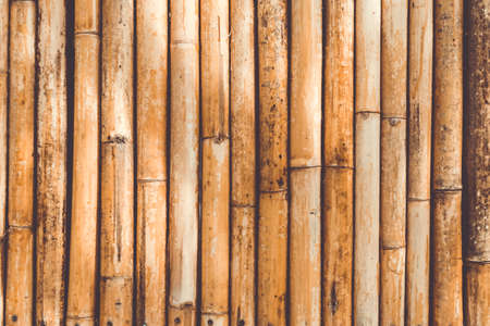 Bamboo background and backdrop battens are arranged to the wall partition and fence in the morning with sunlight.