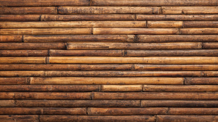 Old brown tone bamboo simple floor or Bamboo texture background for interior or exterior design vintage tone. Brown bamboo stick pattern backdrop. The walkway is made of bamboo bundles.