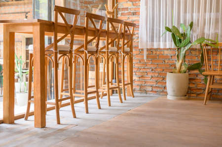 wood stool chair in cafe coffee shop cafeteira restaurant food center interior