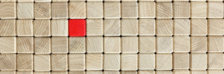 Wooden brown cubes in the middle are red. Unique business solutions concept