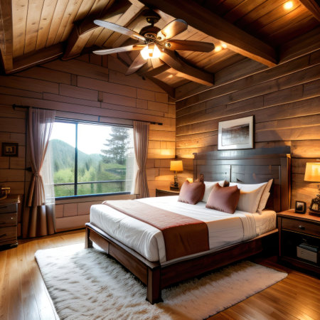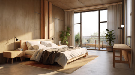 Rustic Retreat: Bedroom Interior Designed with Eco-Friendly Wooden Materials - 3d rendering for Natural Living Spaces