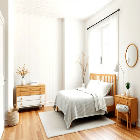 Cozy Rustic Bedroom With Wooden Accents and White Linens in Morning Light