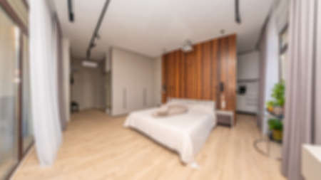 Defocused and Blur Photo of Luxury and Modern Bedroom Hotel Appartment Interior Design. Perfect for background.