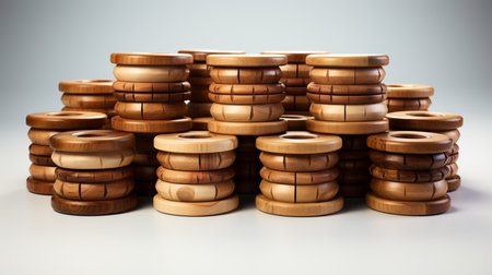 Generative AI Wooden reels with electrical power cables at stand in row in the warehouse. Wire on wooden coils. Electrical power wire equipment