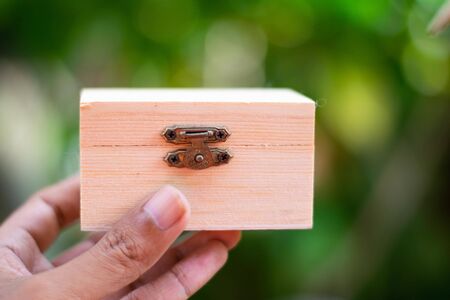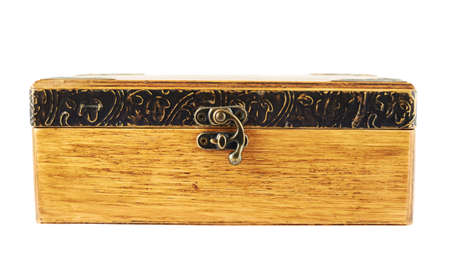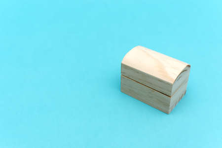 Antique treasure chest on wooden background, vintage style, shallow depth of field