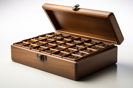 Wooden Spice Box on white background. A high quality image making by generative ai.