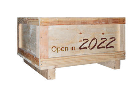 Blac and white, 2020 Happy New Year of wooden number on box with sky and cloud twilight beautiful nature. celebration